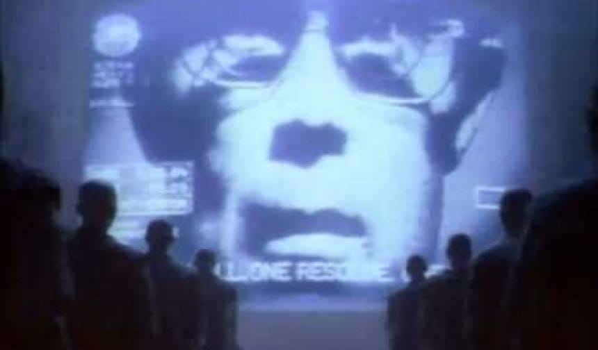 The Ridley Scott–directed “1984” Super Bowl ad didn’t compare IBM to Big Brother casually. It used Orwell’s authoritarian structure wholesale: conformity, oppression, lone rebel, hammer throw.